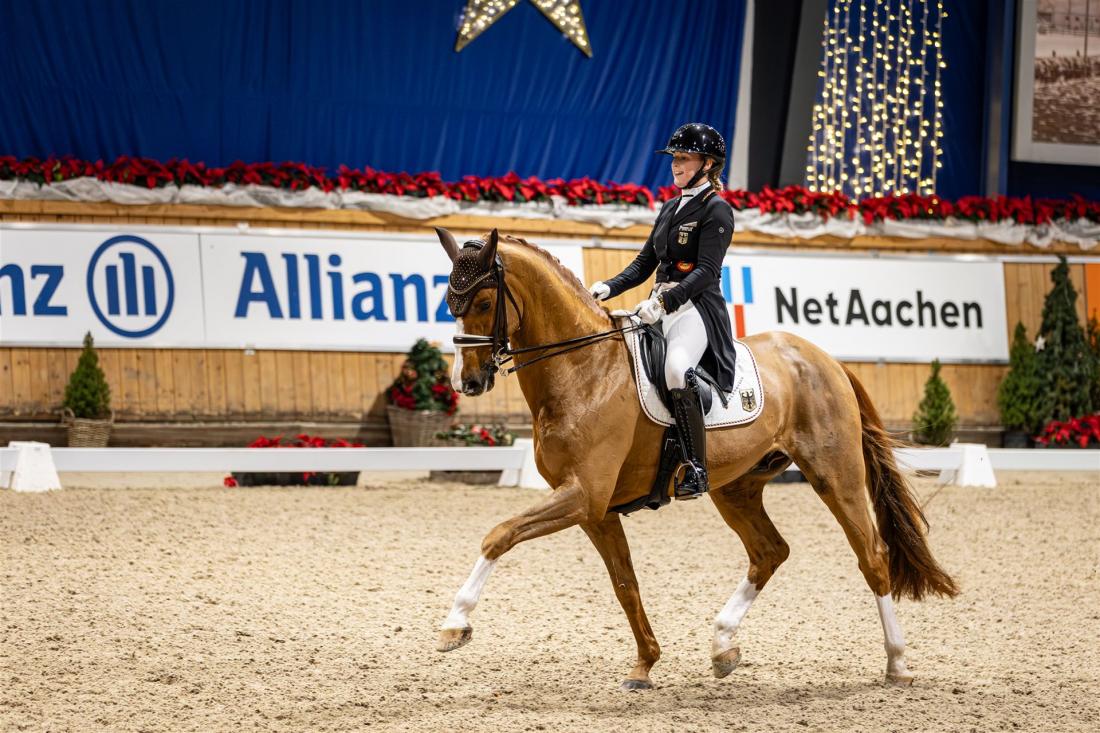 To the music of James Blunt, the duo shone in the arena and were rewarded with a personal best of 77.108 percent. “It’s incredibly special to stand right at the top here. Just being able to compete in Aachen is already a dream – and then to pull off a hat trick like this is simply unbelievable,” beamed Alix von Borries, visibly moved after her success.