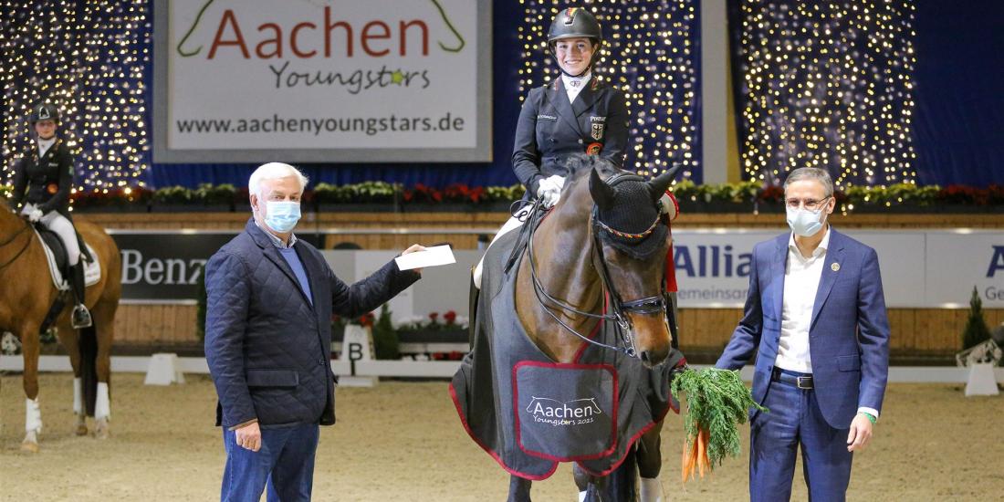 Der Auftakt beim Aachen Dressage Youngstars 2021 ist gemacht: Jana Lang und Baron gewinnen die erste Prüfung der Jungen Reiter, den Preis der Familie Hans-Peter Simons.
