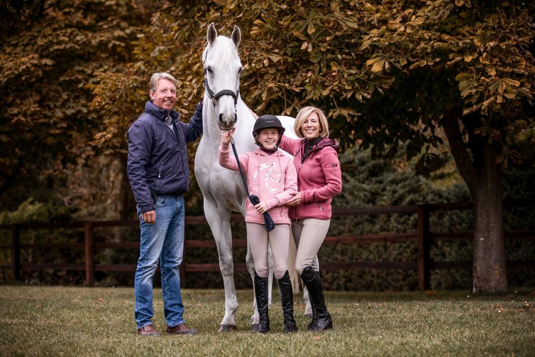 Es ist kalt an diesem Tag in Niedersachsen. Der Morgennebel lichtet sich und zaubert eine fast schon winterliche Kulisse auf die großzügige und akkurat eingezäunte Koppel. In deren Mitte kreist ein falbenfarbenes Pony, darauf sitzt ein junges Mädchen. Ohne Sattel, dafür aber mit einem herzlichen Lachen auf den Lippen. Freihändig galoppiert Brianne Beerbaum mit ihrem Magic über das satte Grün. Eine Wendung rechtsherum, eine nach links. Dann steigt sie ab und zeigt stolz, dass ihr Pony sich auf Kommando sogar verbeugen kann. „Meine Pferde sind meine Freunde“, erzählt die 12-Jährige. Das gilt nicht nur für den kleinen Magic, der sie seit sechs Jahren begleitet, sondern auch für ihre Sportpartner, mit denen sie schon fleißig nationale und internationale Erfolge im Parcours sammelt. Für Carlucci zum Beispiel, den imposanten Schimmel, den Brianne als ihren Lehrmeister bezeichnet. „Er weiß alles über das Springen, von ihm ich kann richtig viel lernen“, sagt sie über den 16-jährigen Holsteiner, der 2019 Mynou Diederichsmeier zum Titel bei den Deutschen Meisterschaften trug.
