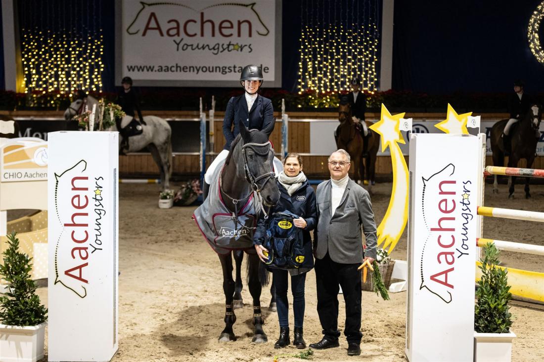 "Meine Stute war einfach sehr gut drauf, sehr motiviert und wir hatten einfach von Anfang bis Ende den richtigen Rhythmus", resümiert die 21-jährige Bereiterin aus dem Stall Sportpferde Herbert ihren Erfolg. Gerechnet hatte sie damit jedoch nicht unbedingt: "Ich bin das eigentlich gar nicht auf Sieg angegangen. Ich will meine Stute morgen auch die große Tour reiten und sie sollte einfach gut vorbereitet sein für morgen." Für die junge Reiterin ist es die siebte und letzte Teilnahme beim Aachen Jumping Youngstars, am Samstag wird sie offiziell ins Seniorenlager verabschiedet.