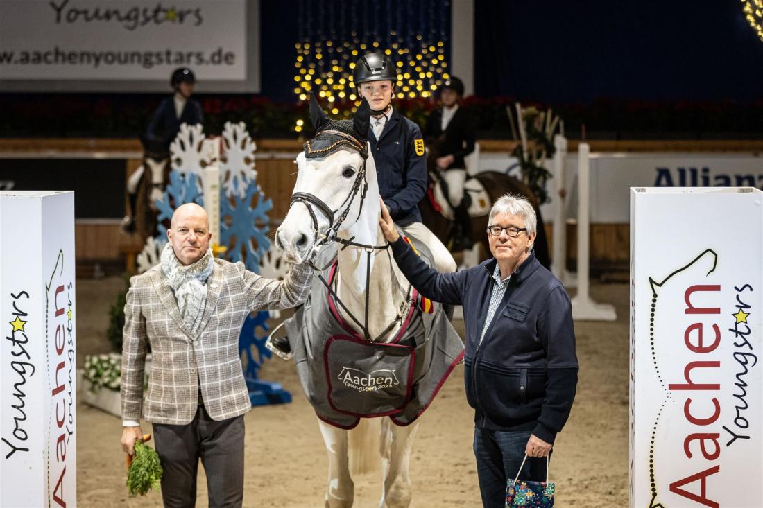 Im Preis der Hubert Flachskampf GmbH Sanitär und Heizung, der zweiten Wertungsprüfung um den Titel des Children Champions präsentiert von UVEX, gelangen Colin Sorg und seinem Schimmel Casillas eine pfeilschnelle und fehlerlose Runde in 56,71 Sekunden. Damit nahm er der vorherigen Starterin Brianne Beerbaum noch gut 4 Sekunden ab. „Ich bin immer schön vorwärts geritten, auch nach den Sprüngen direkt wieder und habe die Kurven gut geschnitten“, fasst er seinen Ritt zusammen. „Natürlich ist auch immer ein bisschen Glück dabei, denn die anderen sind auch super geritten.“ Entscheidend beteiligt am Erfolg: Casillas. „Ich kenne ihn schon, seit ich selbst auf der Welt bin. Er ist ein sehr ehrliches Pferd, mit sehr viel Willen und macht immer alles für mich möglich“, so Colin Sorg.