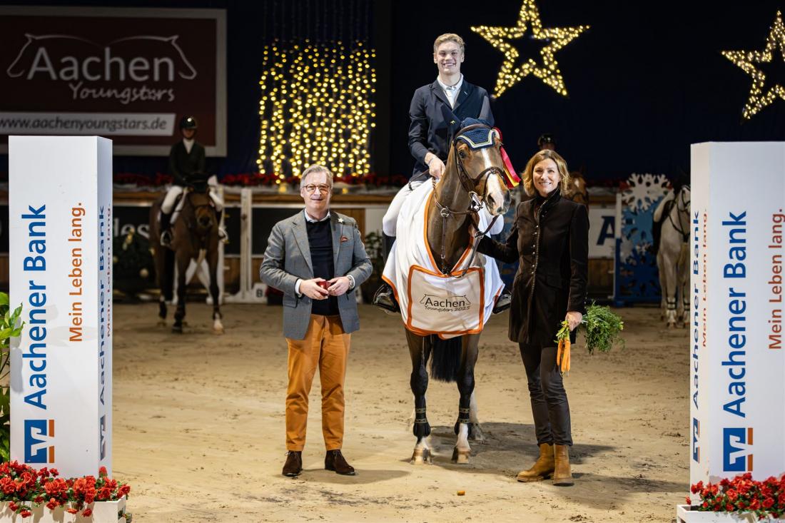 Im Großen Preis der Aachener Bank eG feierten Max Paschertz (Weser-Ems) und seine Stute Foodfox' Cathilde H einen glänzenden Abschluss: Im Stechen der drei besten Paare sicherten sie sich mit einer schnellen und fehlerfreien Runde in 38,68 Sekunden souverän den Sieg.