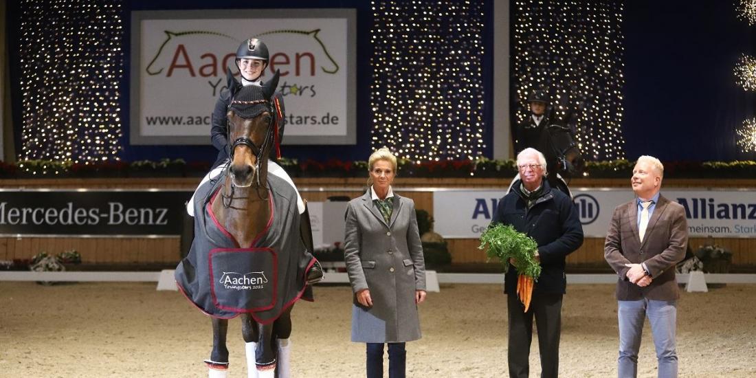 “It simply went perfectly,” a delighted Jana Lang said about her second triumph at the Aachen Dressage Youngsters. Like the day before, the team European Champion of the Juniors, put in an immaculate performance together with her Dutch-bred Johnson-son, Baron, with many highlights. “Baron is simply a fantastic partner,” the 18-year-old raved about her gelding. “He is very self-confident, which is of a great advantage in such a wonderful, but also very exciting setting, as here in Aachen. He enters the arena, grows a couple of inches and wants to present himself.” At the end of the day, the successful duo from Bavaria notched up a score of 75.098 percent – which was even slightly more than on the previous day.