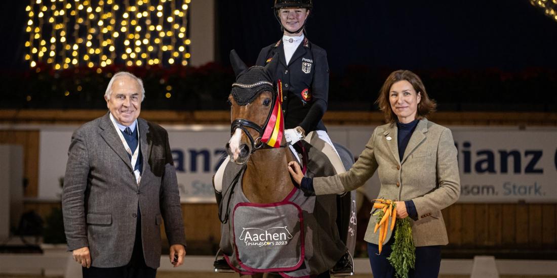 Julie Sofie Schmitz-Heinen could hardly believe her luck. "I would never have expected to win here today. I'm absolutely delighted," said the world number three. Yesterday she was still just under the 75 percent mark, but today she cracked it. The reason for this was a harmonious round, during which the 16-year-old and her Chilly Morning WE performed all the lessons harmoniously and expressively. "He's a pony with a lot of basic quality," the 16-year-old reveals about her sport partner. "He's always a bit hot in the arena, but when I manage to channel this positive energy, it's simply a pleasure to ride him."