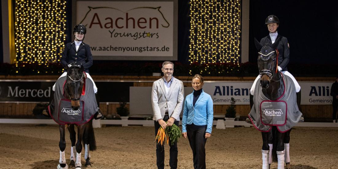Esmae Niessen and Dadona Diva opened the 1st competition in the Children class, the Prize of federal promotion of children dressage sports, at the Aachen Dressage Youngstars 2023. It seemed as if nobody could beat their performance of an impressive 75.750 per cent until the penultimate starter, Greta Louise Wagner with her Fashion Rose, rode into the dressage arena and also took first place.