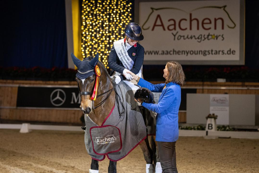 "It's just great to win here. The decorated hall and the whole atmosphere, it's indescribable." Her debut at the Aachen Dressage Youngstars could hardly have gone any better.