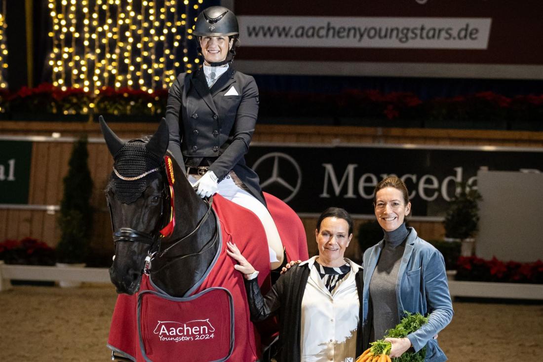 It was a premiere that took place early on Thursday morning in the festively decorated Albert-Vahle-Arena. For the first time this year, the four-legged youngsters will also be in the centre of attention as part of the Aachen Dressage Youngstars. Two national dressage competitions, S* and S***, will offer top riders of all age groups the opportunity to showcase their future hopes in the very special setting of Aachen. ‘It really is a great opportunity to be able to present our young horses in this atmosphere,’ said Stefanie Viehoff-Wolf from ZRFV Albachten e. V., praising the new competition concept, that other well-known riders besides herself knew how to take advantage of in its premiere year.