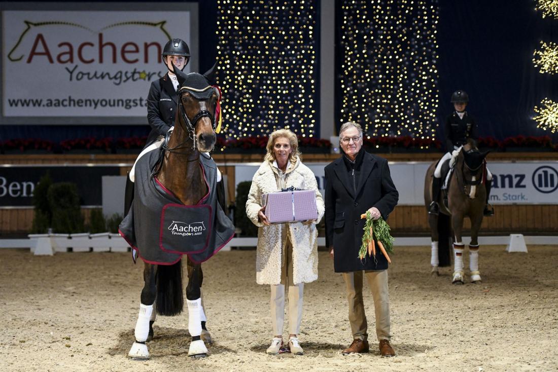 Mit einer Wertnote von 73,627 Prozent entschied sie den Preis der Familie Hans-Peter Simons knapp für sich und setzt ihre Siegesserie mit ihrem Wallach Baron bei den Aachen Dressage Youngstars fort.