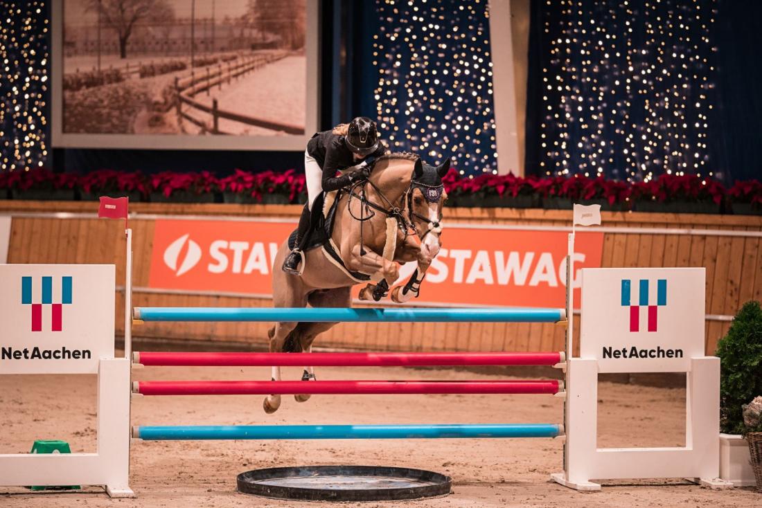 „Caboom“ vor „Zapzarap“ – das klingt nach Geschwindigkeit. Dabei ließ es Charlotte Höing im Stechen des STAWAG-Preises vergleichsweise gemächlich angehen. Und siehe da, der Plan ging voll auf. Zwar war sie die langsamste im Stechen dieser Kl. S** Junioren (bis 16 Jahre)-Prüfung, aber sie steuerte ihren Caboom als einzige fehlerfrei durch den Parcours. Im Sattel des zweitplatzierten Zapzarap saß Tjade Carstensen, der satte acht Sekunden fixer war als die Siegerin, aber eben einen Abwurf hatte. Charlotte Höing kam als einzige Starterin bereits mit einer ganz besonderen Erfahrung in die Soers: Sie weiß bereits, wie es ist, 100 Meter weiter im Hauptstadion zu reiten. Im Sommer war sie die deutsche Starterin bei den „Youth Equestrian Games“, den Olympischen Sommerspielen für Nachwuchsreiter, die im Rahmen des CHIO Aachen ausgetragen wurden. Dort hätte sie um ein Haar gewonnen, ein Abwurf am letzten Sprung machte den Traum zunichte. Bei den „Jumping Youngstars“ machte sie es besser. „Das Wochenende war unglaublich, Wahnsinn, viel besser als erwartet“, so die 18-jährige Sportsoldatin aus dem westfälischen Warendorf. Klar sei sie mit dem Anspruch hergekommen, anzugreifen, aber „dass es mit dem Sieg endet, damit hätte ich niemals gerechnet.“ Junior Championesse 2022 präsentiert von UVEX wurde Romy Rosalie Tietje. Die 17-Jährige aus Eckernförde wurde Dritte im STAWAG-Preis, damit war ihr der Titel der Gesamtsiegerin nicht mehr zu nehmen: „Es war unglaublich und schwer in Worte zu fassen. Mein Pferd Cascadino hat das ganze Wochenende über einen Top-Job geleistet. Er ist so wahnsinnig gut gesprungen, dass ich reinreiten und es einfach genießen konnte.“