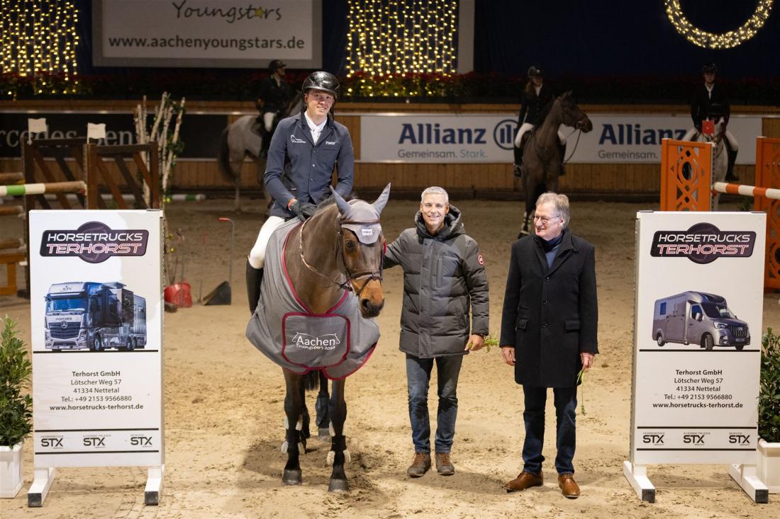 Der erste Sieg bei den Aachen Jumping Youngstars geht in diesem Jahr nach Weser-Ems: Mick Haushorst Reit- u. Fahrv. Hagen St. Martinus e. V. siegte mit Striewes Constanze im Preis der Firma Horsetrucks Terhorst.