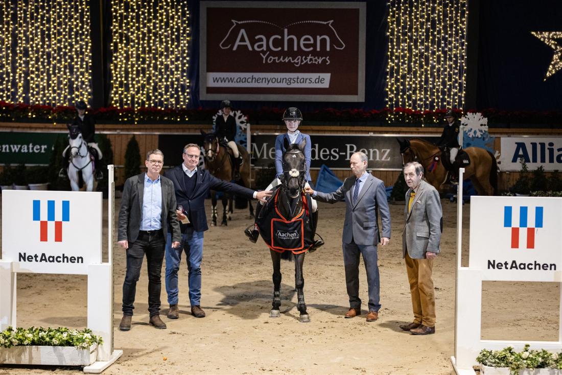 Es war der Tag der Familie Hertz-Eichenrode. Kurz nachdem sich Emma Hertz-Eichenrode im Lager der Children als strahlende Siegerin hatten feiern lassen, sicherte sich ihre Schwester Laura den Sieg in der 3. Wertungsprüfung der Ponyreiter. Zehn junge Talente schafften den Sprung ins Stechen um den NetAachen-Preis, das bis zum Schluss spannend war. Aber so sehr es ihre Mitstreiter auch probierten, es führte kein Weg vorbei an der 15-Jährigen und ihrem braunen Wallach Casper, die im Parcours keine Hundertstelsekunde liegen ließen. „Mein Pony hat das super gemacht“, fand die junge Nachwuchsreiterin aus Hannover nur lobende Worte für ihren 19 Jahre alten Sportpartner. „Ich hätte nicht zu träumen gewagt, hier heute ganz vorne zu stehen. Das ist ein ganz besonderer Sieg für mich.“ Besonders war der Tag auch für Brianne Beerbaum. Im letzten Jahr mit der Schärpe bei den Children dekoriert, sicherte die Tochter von Springsport-Legende Meredith-Michaels Beerbaum, die am Rande des Parcours gefühlt aufgeregter wirkte als zu jener Zeit, in der sie Jahr für Jahr im benachbarten Hauptstadion des CHIO Aachen um Siege und Platzierungen ritt, dank ihrer fulminanten Leistungen über alle Turniertage in diesem Jahr den Titel der Hallen-Championesse bei den Ponyreitern. „Ich glaube, mein Pony liebt Aachen genauso sehr wie ich“, lobte die amtierende Deutsche Meisterin sowie EM-Bronzemedaillengewinnerin die Leistung ihres Sportpartners Noriego vd Riloo, der ihr im Sommer bereits den Sieg beim Preis der Besten geschenkt hat. „Hier auch in diesem Jahr wieder eine Schärpe mit nach Hause nehmen zu dürfen, macht mich sehr stolz und glücklich.“