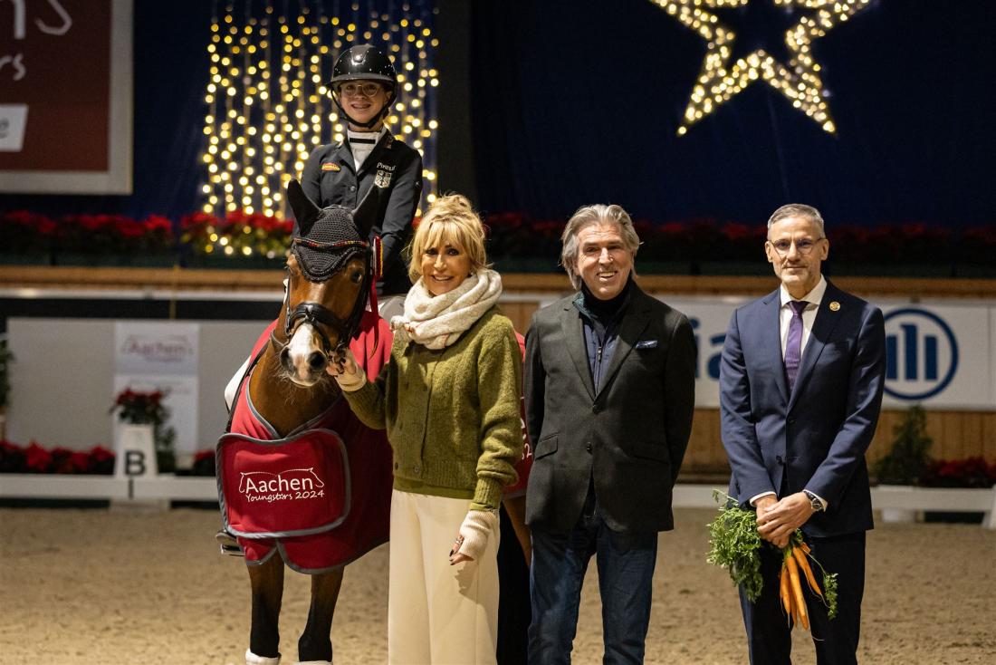 Mit persönlicher Bestleistung können Madlin Tillmann und ihr Pony Chilly Morning WE den Preis des Dressurstalls Dahmen gewinnen und damit einen erfolgreichen Einstand in die Aachen Dressage Youngstars feiern. Bei ihrem ersten Start in der weihnachtlich geschmückten Albert-Vahle-Halle zeigten die beiden eine tolle Runde und setzten sich mit 75,429 Prozent an die Spitze des internationalen Starterfelds. „Es war ein schönes Gefühl und ich bin super happy, dass wir es heute schon so gut schaffen konnten“, strahlte die Doppel-Europameisterin nach ihrem Sieg. Für ihr Pony fand sie nur lobende Worte: „Chilly war wirklich auf meiner Seite, ich hatte ihn bei mir und konnte richtig zum Reiten kommen und es einfach genießen.“ Er sei ein starker Kämpfer und unterstütze sie auch immer, wenn sie mal nicht die perfekte Hilfe gebe. „Zusammen sind wir dann ein super Team!“