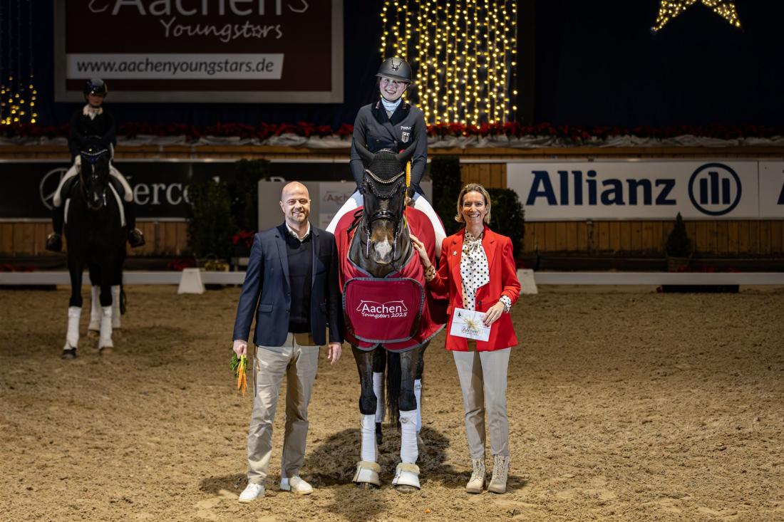 Für die Rheinländerin Alix von Borries läuft in Sachen Titelverteidigung bislang alles nach Plan. Bereits 2024 wurde die mittlerweile 19-Jährige bei den Aachen Dressage Youngstars mit der begehrten Schärpe der Hallen-Championesse, präsentiert von UVEX, ausgezeichnet. In diesem Jahr setzt die talentierte Nachwuchsreiterin ihre Erfolgsgeschichte in der weihnachtlich geschmückten Albert-Vahle-Halle fort: Nach ihrem Erfolg am gestrigen Donnerstag war das Talent gemeinsam mit ihrer leichtfüßigen Sportpartnerin Feingefühl FRH auch heute im Preis in memoriam Hans-Peter Simons nicht zu schlagen. Besser noch: Die Jury belohnte die harmonische Vorstellung der beiden mit einer neuen persönlichen Bestleistung von 73,137 Prozent. „Es war einfach eine mega gute Runde heute. Mein Ritt hat so viel Spaß gemacht“, strahlte die Rheinländerin nach ihrem Erfolg.